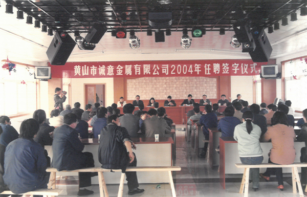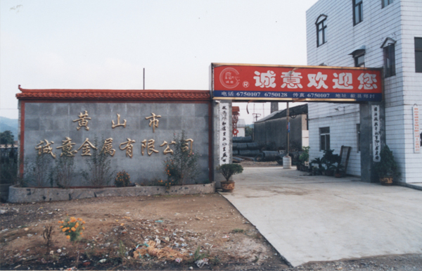 1994年9月26日,汪小五先生創建歙縣誠意制釘廠。1996年改建成立歙縣誠意鉛絲制釘廠。1997年注冊“誠意”商標。1999年3月24日注冊成立黃山市誠意金屬有限公司,生產鐵釘、鉛絲,銷售建筑鋼材,當年躋身“黃山市民營企業50強”行列。