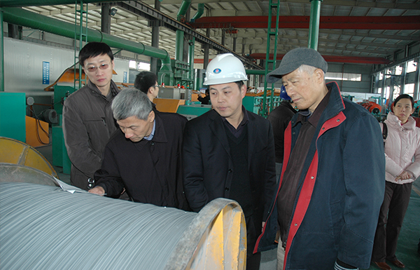 2011年公司第四代技術員黃小毛陪同黃崇褀院士參觀車間
